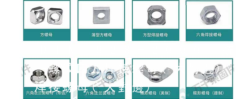 法蘭面螺母(GB6177/DIN6923)、法蘭面螺母尼龍鎖緊螺母(DIN6926)、四角焊接螺母(DIN928)、六角焊接螺母(DIN929)、蝶帽(GB62、DIN315、美制)、K帽等。2、合金鋼國標螺母的標準尺寸為5/16-4"。合金鋼國標螺母包 六角焊接螺母標準規(guī)定的是規(guī)格為M4-M16的焊接螺母,是適用于可焊接的鋼板連成的焊接螺母,其具體國標GB(GB/T)見下圖。要注意正確讀取標準表中的數(shù)字,如螺紋規(guī)格D=M10,即材料為含碳量不大于0.25%的鋼,不經(jīng)表面處理的