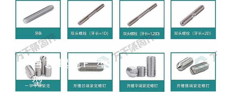 沉頭內六角螺釘(平杯)、半圓頭內六角螺釘(圓杯)、十字槽盤頭機螺釘、十字槽沉頭機螺釘、十字槽大扁頭機螺釘、十字槽盤頭自攻釘、十字槽沉頭自攻釘、十字槽大扁頭自攻釘、全牙絲桿(牙條)、六角螺母、法蘭 自切自攻螺釘有以下幾種型式:十字槽盤頭自切自攻螺釘,十字槽沉頭自切自攻螺釘。十字槽半沉頭自切自攻螺釘,六角頭自切自攻螺釘。3、自擠自攻螺釘(自攻鎖緊螺釘)自擠自攻螺釘?shù)穆菁y一般為機螺紋,很少采用自攻螺紋。在扳擰