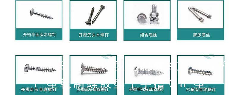 1、Flat:平頭 (鎖入后,頂部與工作件齊平)2、Oval:色拉頭、O頭、半沉頭 3、Round:圓頭 4、Pan:圓扁頭 5、Truss:大圓扁頭 6、Hex:六角頭 A-5:Finish Code/外觀處理。公制自攻螺絲 :于品名后方直接標(biāo)示 Tapp 六角花形等;內(nèi)扳擰:一字槽、十字槽H型、十字槽Z型、十字槽F型、四方槽、復(fù)合槽、內(nèi)花鍵、內(nèi)六角花形、內(nèi)三角、內(nèi)六角、內(nèi)12角、離合器槽、六葉片型槽、高扭矩十字槽等。3、螺紋種類(lèi)螺紋種類(lèi)繁多,有自攻螺紋(
